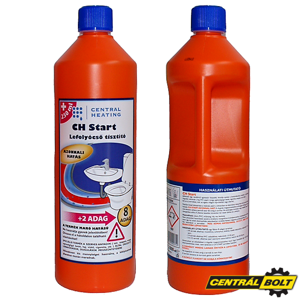 A CH START egy nagyhatású lefolyócső tisztító különböző dugulások megszüntetésére. Erősen agresszív folyadék, amelyet a szerves és közömbös anyagok (haj, wc papír, rongy, egészségügyi betét, szappan, zsíros maradványok, cigarettacsikk, ételmaradványok, stb…) által okozott lerakódások megszüntetésére fejlesztettek ki. A CH START fajsúlya majdnem kétszerese a vízének, így egészen az elzáródásig hatol, ahol azonnal kifejti hatását.