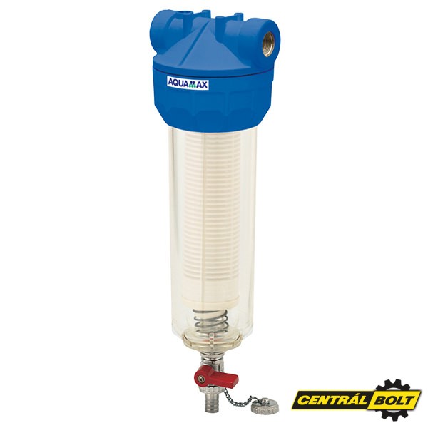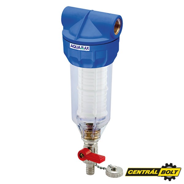 Tisztítása könnyen elvégezhető a szűrő alján található golyóscsap megnyitásával. A felrakódott szennyeződést egyszerűen a vízáram lemossa 10-15 másodperc elteltével, amikor a szűrő megtisztult, a golyóscsap elzárható.