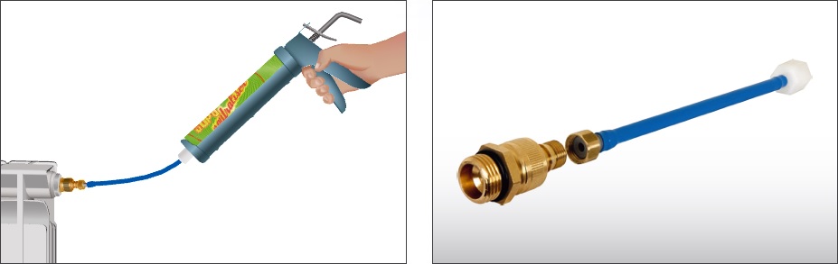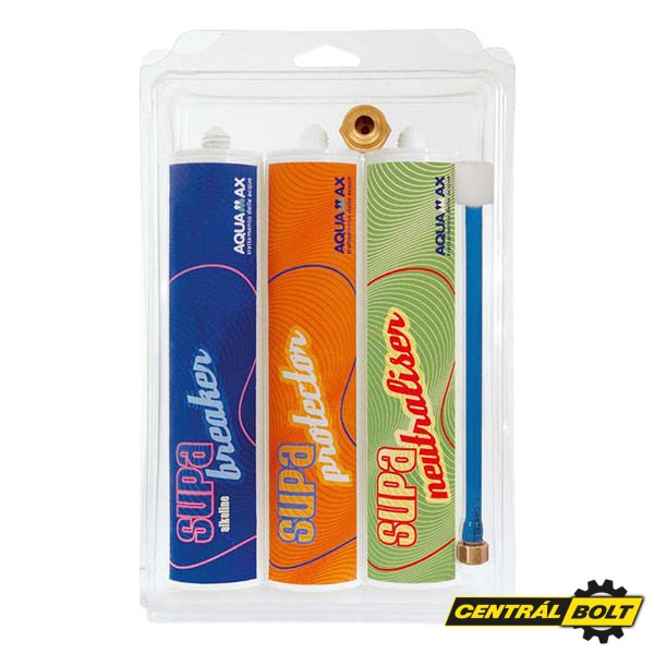 A SUPA KIT készlet, forradalmian új megoldás kisebb fűtési rendszerek tisztítására, mészkő és a vasoxid iszap feloldására. A termékeket radiátoron keresztül kell bejuttatni a rendszerbe. A radiátor végdugó (légtelenítő) helyére egy speciális idomot helyezünk el, melyre csatlakoztatható a pisztoly. A patronból a terméket a pisztoly segítségével adagoljuk a végdugó helyére helyezett idomon keresztül. Használata biztonságos nem jelent veszélyt a fal vagy a padló számára. Az idom zárható kivitelű, így a radiátorban hagyható, és a későbbi tisztítások alkalmával ismét használható.
