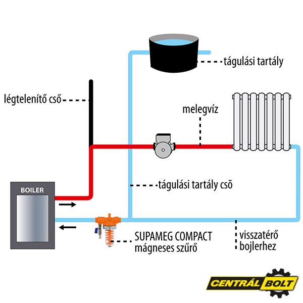 A SUPAMEG COMPACT egy speciális mágneses iszapleválasztó szűrő, mely arra lett kifejlesztve, hogy a vasoxidot összegyűjtse a vízből. Lehet telepíteni a fűtési rendszerekhez, vagy tisztításkor, rendszer feltöltéskor a PROMAX 30 SUPAFLUSH szivattyúhoz csatlakoztatható.