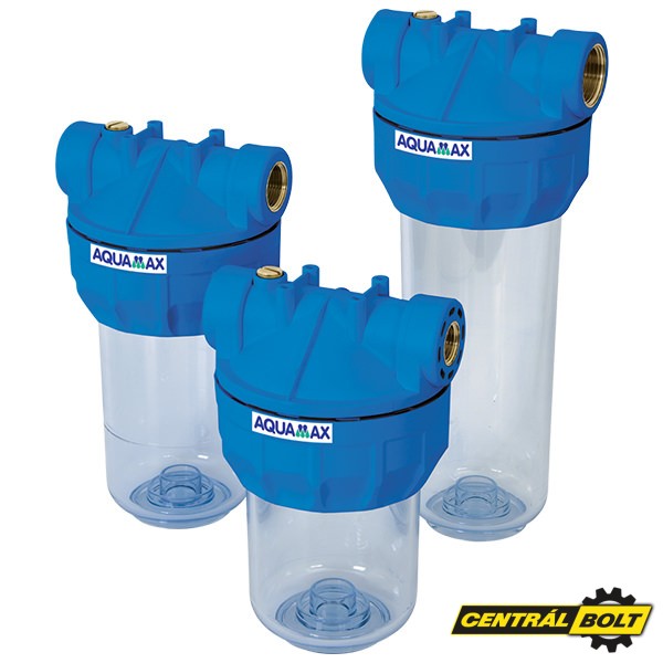 A vízben gyakran találhatók mechanikus szennyeződések, homok, iszap, sár, rozsda, stb… méretük változó néhány mikrontól pár milliméterig terjedhet, melyeknek jelenléte károsodást okozhatnak a vízrendszerben, csapokban, háztartási berendezésekben. A probléma kiküszöbölésére az Aquamax egy szűrőcsaládot ajánl 5”, 7”, 9”3/4-os méretekben. A szűrők 3 részes kivitelben kaphatóak (fej, csésze, hollandi anya), sárgaréz vagy műanyag fejjel, műanyag (SAN) vagy trogamid csészével. A belevaló szűrőbetétek különböző anyagból és formában készülnek. Minden Aquamax szűrő fel van szerelve légtelenítő szeleppel, a nyomás eltávolításához, valamint egy speciális műanyagkulcs is létezik a könnyebb szétszerelhetőség érdekében.